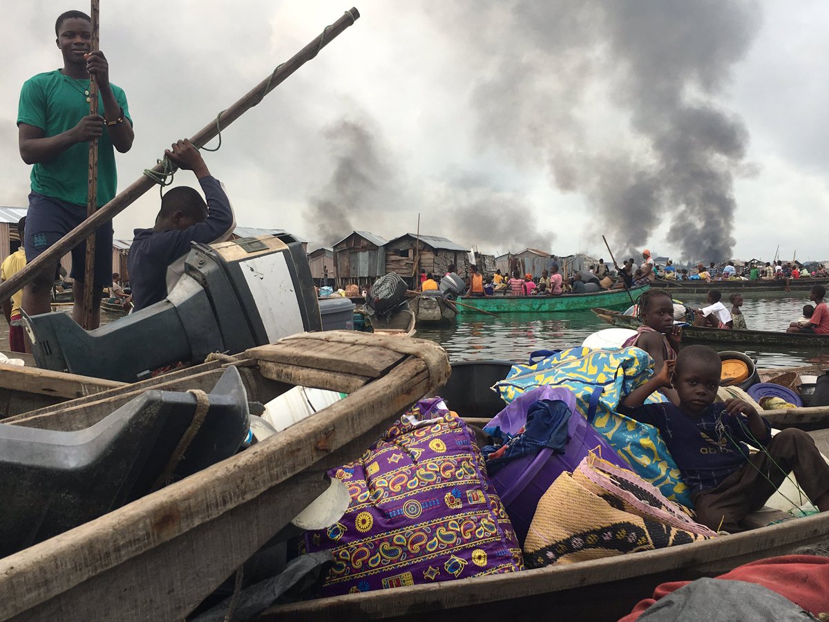 Happening now! Just this morning #OtodoGbame residents were chased into Lagoon, stranded in boats between Orange Island and a police boat blockade leaving them with Nowhere to go